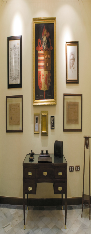 Su fascinación por el mundo árabe ha servido de inspiración para ambientar una parte del museo, en el que se exhibe una réplica de la bandera que él inventó y numerosos mosaicos que embellecían sus casas cuevanas.